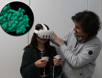 Studierende des Bachelorstudiengangs „Angewandte Biologie“ durften nun als Erste die VR-Szenarien testen: Im Rahmen einer Vorlesung, die sich unter anderem mit Aspekten der Chemoinformatik befasst, untersuchten sie mithilfe von VR-Brillen Wirkmechanismen klassischer Wirkstoffe. Im Fokus standen dabei die Krebstherapeutika Imatinib und Sotorasib sowie die neuartige Wirkstoffklasse der PROTACs (Proteolysis Targeting Chimeras) und deren jeweilige Zielmoleküle. „Durch die VR-Szenarien kann den Studierenden auf ganz plastische Weise vermittelt werden, wie passgenau Wirkstoffe an Ihr Zielmolekül binden“, erklärt Nicolas Werbeck. Auch die unterschiedlichen Wirkmechanismen veranschaulichen die 3D-Modelle eindrücklich, beinahe zum Greifen nah.