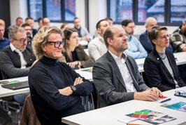 Im Anschluss stellte Prof. Dr. Michael Hepp, Studiendekan des Executive MBA und Prodekan für Lehre, die berufsbegleitenden Weiterbildungsprogramme der HFU Business School vor, darunter das viersemestrige „Executive MBA Programm“ sowie das einsemestrige „Management Essentials for Professionals“, die beide im März 2025 wieder starten.