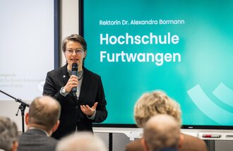 Dr. Alexandra Bormann, Rektorin der HFU, eröffnete die Veranstaltung und unterstrich die Bedeutung der Partnerschaft zwischen Hochschule und regionalen Unternehmen – sei es durch Forschungskooperationen oder praxisorientierte Bildungsangebote. GVO- Präsident Joachim Müller dankte der Hochschule für die Gastfreundschaft und sprach über die Vision einer intensiveren Zusammenarbeit. Stefan Beetz, Vorstand der Sparte Industrie und Handwerk, sprach über die Notwendigkeit lebenslangen Lernens und die Herausforderungen, die neue Technologien mit sich bringen.