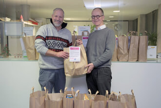 Hochschulseelsorger Alexander Krause startete wiederholt die Aktion „Eine Tüte Güte“ am Tuttlinger Campus der Hochschule Furtwangen (HFU). Dabei werden Spendentütchen an die Beleg- und Studierendenschaft verteilt, welche von ihnen befüllt und zu Weihnachten dem Tafelladen Tuttlingen übergeben werden. Die Aktion findet diesjährig das zweite Mal statt. 2023 konnte Krause zwei Autoladungen der mit Lebensmittel- und Sachspenden gefüllten Taschen des Campus dem Tafelladen Tuttlingen übergeben. „Es ist schön, dass die Studierenden und die Belegschaft vor den Nöten vieler Menschen nicht die Augen verschließen und den Tuttlinger Tafelladen unterstützen“, so Alexander Krause. „Als öffentliche Einrichtung tragen wir auch Verantwortung gegenüber der Gesellschaft und versuchen zu helfen, wo wir können“, erklärt HFU-Dekan Professor Dr. Albrecht Swietlik.