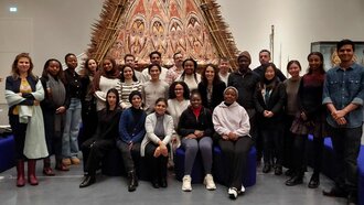 Studierende im Programm „International Relations and Cultural Diplomacy“ erfahren mit Prof. Dr. Julika Baumann Montecinos das Humboldt Forum Berlin als Lernort.