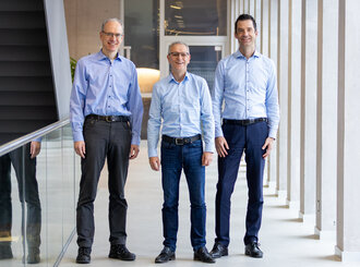 Sie freuen sich auf den offiziellen Projekt-Launch: Prof. Dr. Martin Haimerl, Rudolf Merz und Lars Buche vom Innovations- und Forschungscentrum der HFU (von links).