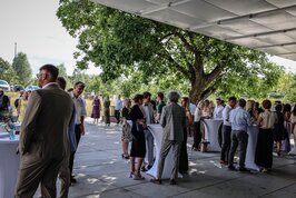 mit Professorinnen und Professoren, ehemaligen Kommilitoninnen und Kommilitonen