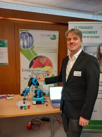 Seine ersten Wochen an der HFU beschreibt Gerlich als "etwas tumultig". Der Cyberangriff habe auch ihm in der Lehre ein paar Steine in den Weg gelegt, aber mit viel Unterstützung aus dem großartigen Team der Fakultät und auch der Hochschule insgesamt habe er über diese gut drübersteigen können. "Ich bin dankbar für die überaus positive Aufnahme, die ich hier erlebt habe - sowohl von den Kolleginnen und Kollegen als auch von den Studierenden".