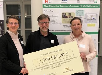 Über einen großen Erfolg durfte sich die Hochschule Furtwangen in dieser Woche freuen: Als eines von sechs Projekten im Land wird das Verbundprojekt „MoDe_ProBio (Model-based design of processes for the bioeconomy)“ vom baden-württembergischen Wissenschaftsministerium im Rahmen des Programms für Angewandte Nachhaltigkeitsforschung gefördert. Der Hochschule Furtwangen und ihren Projektpartnern wurde eine Fördersumme von fast 2,4 Millionen Euro zugesprochen bei einer Laufzeit von vier Jahren. Die neue Rektorin der Hochschule Furtwangen, Dr. Alexandra Bormann, Kanzlerin Andrea Linke und Projektleiter Prof. Dr.-Ing. Volker C. Hass freuten sich bei der Übergabe riesig über die erneute Bestätigung der Forschungsstärke der HFU. „Die Hochschule Furtwangen steht für herausragende Forschung. Durch diesen Erfolg werden wir unser Nachhaltigkeitsprofil deutlich ausbauen. Ich freue mich riesig und gratuliere Professor Hass und den Projektpartnern ganz herzlich!“, sagte HFU-Rektorin Dr. Alexandra Bormann.