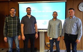 Bild: (von links nach rechts) Fabian Finken (Sicherheitsingenieur der HFU), Patrick Letz (Techniker Krankenkasse), Max Federer (Koordination Betriebliches Gesundheitsmanagement HFU), Tobias Hauser (Techniker Krankenkasse)