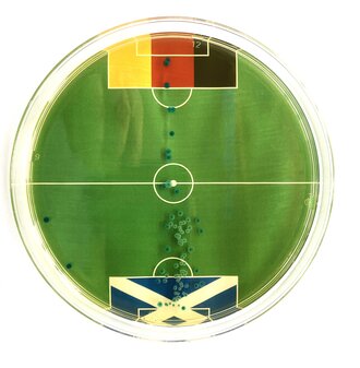 Inspiriert wurde Fußballfan Egert von früheren unterhaltsamen Orakeln wie etwa einem Oktopus, der Fußballergebnisse „vorhersagte“. „Man darf mit der eigenen Forschungsdisziplin auch mal ein bisschen Spaß haben“, sagt Egert, der als führender Hygieneprofessor in Deutschland ansonsten unter anderem Studien zur Keimbelastung von Haushaltsgegenständen führt. Für sein Orakel werden einige wenige Keime sehr gleichmäßig auf einer Nährlösung in einer Petrischale mit aufgebrachtem Spielfeld verteilt. Nach einigen Stunden im Brutschrank kann das Wachstum der Keime genau beobachtet werden – in Form von Punkten, die dann in den beiden Spielhälften zu sehen sind.