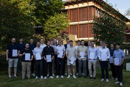 „Informatikerinnen und Informatiker sind die Architekten der digitalen Welt und starten in eine glänzende berufliche Zukunft“, begrüßte Dekan Prof. Dr. Steffen Thiel die zahlreich erschienenen Gäste. Bei sommerlichen Temperaturen waren sie am Freitag 28. Juni 2024 zur Abschlussfeier in die Aula der Hochschule Furtwangen zusammengekommen. In den vergangenen zwei Semestern haben knapp 120 Studierende ihren Bachelor- oder Masterabschluss in der Informatik erworben. Im Rahmen der Feier wurden erstmals Absolventen des Studium Plus-Modells verabschiedet. Dieses Modell verbindet in einzigartiger Weise das Studium Allgemeine Informatik mit der Berufsausbildung Mathematisch-technischer Softwareentwickler. Thiel appellierte an die jungen Absolventinnen und Absolventen, immer den Menschen hinter der Technologie im Blick zu behalten und ethisch korrekt zu handeln.