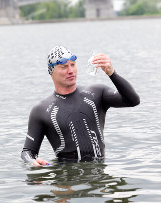 Die Elbe ist bereits der vierte Fluss, den Prof. Dr. Andreas Fath von der Hochschule Furtwangen durchschwimmt! Foto: Braxart