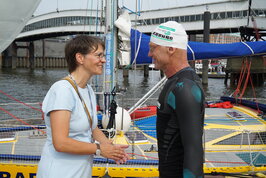 Er ist am Ziel! Nach 1083 Kilometern Schwimmen durch die Elbe erreichte Prof. Dr. Andreas Fath heute die Flussmündung und somit den Schlusspunkt seines spektakulären Forschungsprojekts „Pure Elbe“. An der Kugelbake in Cuxhaven endete das neueste Schwimmabenteuer des Wissenschaftlers, der als “schwimmender Professor“ international bekannt ist. In nur 25 Tagen hat Fath die gesamte Elbe durchschwommen; am 16. August war er im tschechischen Riesengebirge gestartet.