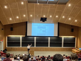 Durch meinen Betreuer in Wien, Florian Wagner, erfuhr ich dann von einem Kongress namens STAMP-Workshop welcher vom M I T vor Ort in Boston ausgetragen wird und sich mit Ergebnissen, Problemen und Anwendungen von STAMP in Industrie und Wissenschaft beschäftigt. Im Frühjahr 2024 bewarb ich mich mit den Ergebnissen meiner Masterarbeit am MIT als Speaker für den STAMP Workshop und wurde angenommen. So kam es, dass ich am 06. Juni 2024 vor über 300 Zuhörern aus Unternehmen wie Google, American Airlines, Boeing und Institutionen wie der U.S. Navy & U.S. Airforce oder dem U.S. Nuclear Regulatory Commission (NRC) vortragen durfte.
