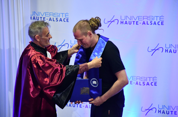 Dr. Philipp Ruf erhält die Doktorwürde der Université de Haute-Alsace im Rahmen einer Promotionskooperation mit der Hochschule Furtwangen.