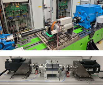 Der Prüfstand ist mit zwei leistungsstarken Abtriebsmaschinen ausgestattet, die jeweils eine Nennleistung von 250 kW aufweisen. Durch ein maximales Drehmoment von 11.500 Nm und einem Nennmoment von 3.500 Nm (bei 680 min-1) können die Maschinen zur Simulation von Fahrwiderständen genutzt werden. Die leistungsfähige DC-Quelle mit 250 kW Nennleistung bei 730 V/600 A ermöglicht es, ein Antriebssystem mit simulierter Batterie zu untersuchen.