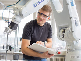 Das Labor für Robotertechnik konzentriert sich auf die Forschung und Entwicklung von Robotern und automatisierten Systemen für die Industrie. Das umfasst die Programmierung, Steuerung und Integration von Robotern in Produktions- und Automatisierungsprozesse.