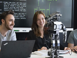 Im Labor für Robotik und intelligente Systeme werden unterschiedliche Robotik-Systeme untersucht, um ein breites Spektrum aktueller Technologien abzudecken. Hier beschäftigt man sich sowohl mit mobilen und humanoiden Robotern als auch mit stationären Robotern mit Greifarmen.