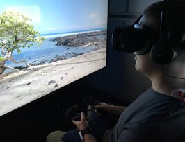 Ebenfalls im virtuellen Setting war Prof. Dr. Verena Wagner-Hartl mit ihren Master-Studierenden unterwegs. Ihre Projektgruppe wies gleich zwei Besonderheiten auf. Zum einen ergab sich beim Thema „Umgang mit VR-Headsets“ eine interdisziplinäre Zusammenarbeit mit Prof. Nikolaus Hottong von der Fakultät Digitale Medien und den zwei dort angesiedelten Masterstudiengängen „Design interaktiver Medien“ und „Medieninformatik“. Zum anderen erkannte die Gruppe, dass ihr Thema viel grundlegender untersucht werden musste als zunächst angenommen. „Wir sind in die Grundlagenforschung eingestiegen und haben untersucht, welche Auswirkungen das reine Aufsetzen von VR-Headsets hat“, erklärt Wagner Hartl. „Niemand hat sich bislang mit dem ‚Grundstress‘ auseinandergesetzt, der bei der VR-Nutzung entsteht“, ergänzt Hottong. Also testete die Studierendengruppe, wie unterschiedlich auf gleiche Inhalte reagiert wird, wenn sie auf Bildschirmen oder eben in einer VR-Simulation erlebt werden. Dazu wurden Hautwiderstand, Muskel- und Herzaktivität gemessen und Bewertungskriterien erstellt, um empfundenes Unwohlsein zu erfassen. „Interaktion in der virtuellen Realität findet oft im so genannten ‚personal space‘ statt“, sagt Prof. Hottong, „also im persönlichen Nahbereich, und das ist visuell anstrengend.“ „Das spannende Ergebnis ist, dass sich ein Nacheffekt abzeichnet“, berichtet Prof. Wagner-Hartl. „Wir haben Hinweise darauf, dass Stresseffekte durch VR-Headsets noch eine Weile nach der Anwendung bestehen bleiben.“ Daran will das interdisziplinäre Team gemeinsam weiterarbeiten – denn solche Erkenntnisse wären sowohl in der Entwicklung von neuen Anwendungen als auch bei Vorgaben von Arbeits- und Pausenzeiten entscheidend.