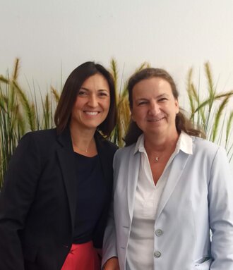 Prof. Lucina Odoi (links) mit HFU-Kanzlerin Andrea Linke