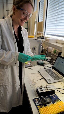 Das Ziel von Doktorandin Quint und Prof. Deigner ist es, Moleküle durch Nanoporen quantitativ nachzuweisen – doch soll das Verfahren generalisierbar sein und auch auf Bakterien oder Viren in Nano-Größenordnung anwendbar. „Derzeit wird in Kliniken manchmal gar nicht so viel getestet, weil herkömmliche Methoden zu teuer sind“, weiß Deigner. Gelingt den Forschenden an der HFU der Übertrag des theoretisch Möglichen in die Praxis, wäre sogar denkbar, das neue Bestimmungsverfahren auch bei Selbsttests, in Arztpraxen oder Diagnostiklaboren einzusetzen. Auch Bakterien oder Viren, deren Größe auch im Nanometerbereich liegen, könnten durch das Verfahren identifizierbar sein. Isabel Quint hat weitere zwei Jahre Zeit für das Thema und ihre Doktorarbeit veranschlagt. Bis dahin freut sie sich über jeden kleinen Erfolg. Quint vergleicht die Anfänge mit der Suche „nach der Nadel im Heuhaufen“ – derzeit arbeitet sie vor allem erst einmal daran, mit gleichem Material reproduzierbare Ergebnisse zu erzielen.