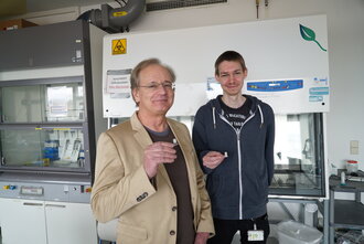 Professor Dr. Hans-Peter Deigner (links) und Doktorand Oliver Riester
