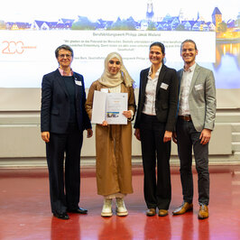 „Tobias Hauser ist ein früherer Deutschlandstipendiat und ich freue mich zu sehen, dass er jetzt erfolgreich seinen Abschluss gemacht hat. Die Deutschlandstipendien sind seit drei Jahren eine Herzensangelegenheit von mir“, sagte Prof. Dr.-Ing Katja Gutsche, Rektoratsbeauftragte für die Deutschlandstipendien. „Wir zeichnen Exzellenz aus - sowohl akademisch als auch persönlich.“ Mit Deutschlandstipendien fördern Unternehmen, Verbände und Privatpersonen besonders engagierte und leistungsstarke Studierende mit einem monatlichen Betrag, um ihnen einen besonderen Fokus aufs Studium zu erlauben.