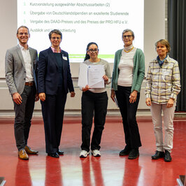 Eine besondere Ehre war die Verleihung des DAAD-Preises an Siwar Helaoui durch Brigitte Minderlein, Leiterin des International Center an der HFU. Die aus Tunesien stammende Helaoui studiert am Campus Schwenningen International Engineering und wurde besonders für ihre guten Leistungen und ihr Hochschulengagement gelobt.