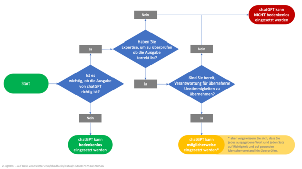 Für welche Zwecke kann man ChatGPT vor dem Hintergrund seiner Funktionsweise unbedenklich verwenden, und in welchen Fällen sollte man von einer Verwendung besser absehen? Der Entscheidungsbaum klärt auf.