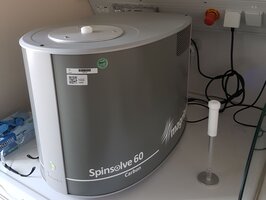 ausgestattet mit einem inversen Multiprobenkopf. Pulse bestimmt für 1H, 13C, 31P und 29Si. Pulsbestimmung für alle Kerne mit Kernspin außer Fluor potentiell möglich. - 60 MHz Magritek Benchtop NMR Spektroskopie